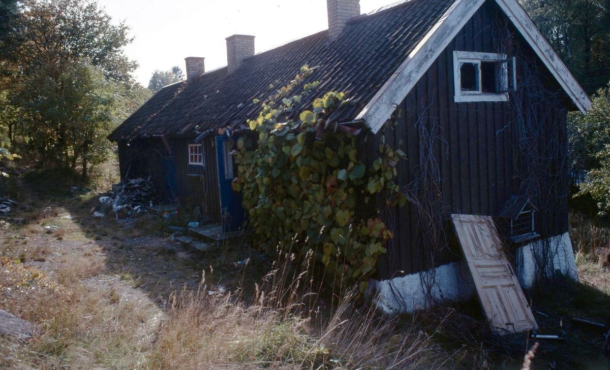 Torpställe som har tillhört familjen Werlin utefter Streteredsvägen vid Risås backe (fastighet Backen) cirka 1980. Baksidan av den gamla ladugården som senare blev ombyggd till sommarbostad. Till höger Streteredsvägen.