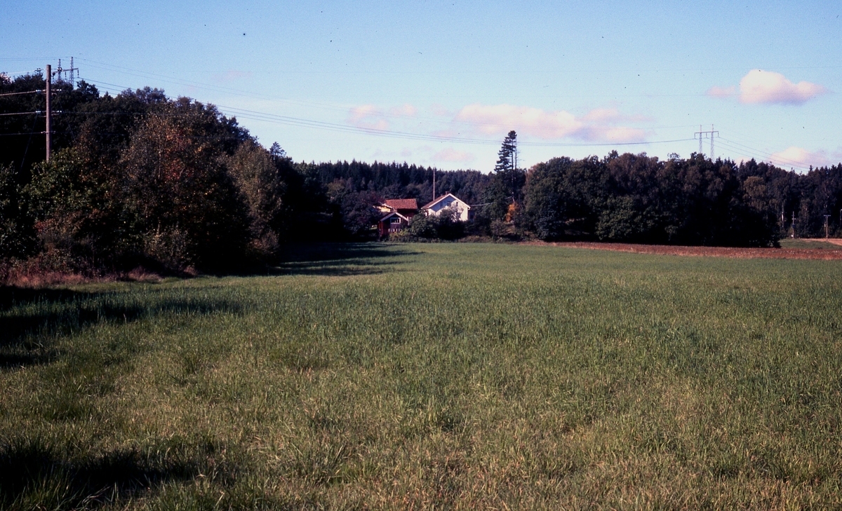 Sporred 1:5 "Aronssons", "Högsåker" år 1980. Foto taget från Tulebovägen mot gården i Sporred. Relaterat motiv: A1723.