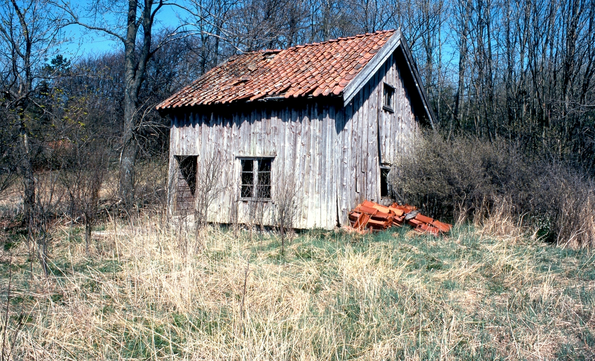 Långåker 1:2 "Davids", "Derras" år 1978. Uthusbyggnad, uppförd på 1930 - 40-talet, använd som bland annat sädesmagasin. Byggd av virke från "Anna på madens" ladugård. Relaterat motiv: A0582.