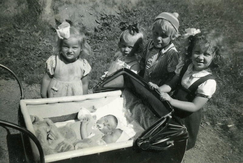 I barnvagnen tvillingarna Lars och Olof Högström f. 1945.