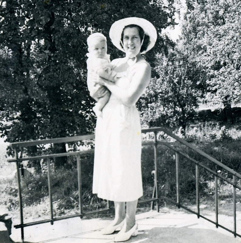 Eivor Bjerrhede f. 1921 håller sonen Staffan Bjerrhede f. 1953 i famnen.