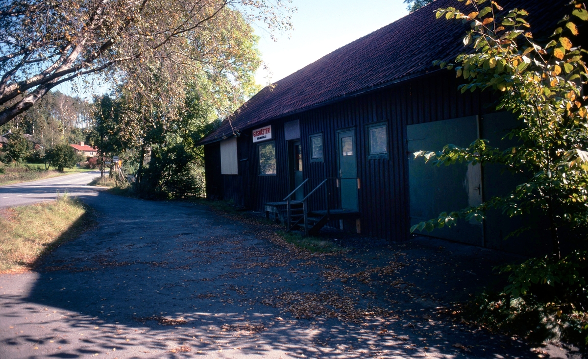 Livered 1:15 "Majas" (nu: Streteredsvägen 36) år 1980. Ladugård tillhörande gården, ombyggd cirka 1950 till tvätteriet "Kållereds tvätt". Vid fototillfället fanns där ett glasmästeri. År 2020 är detta rivet och ersatt med ett nybyggt radhus med flera lägenheter. Relaterat motiv: A1703.