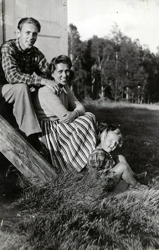 Thure Johansson Bjerrhede, Vommedal Östergård "Olas" (f. 1918 d. 2004), hustrun Eivor Dahlberg Bjerrhede, Burås, Gbg (f. 1921 d. 2015) samt Eivors systerdotter Monica Cedstrand (f. 1940).