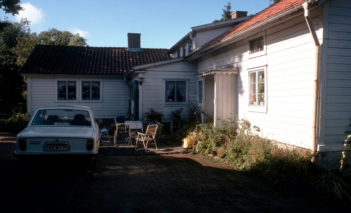 Tulebo Nordgård 1:4 "Buskens", "Dahlbecks" år 1980. Byggnad från 1800-talet. Inköpt 1917 av ingenjör Karl Alberts. Till vänster ses en 1900-tals tillbyggnad som kallas "Storstugan". På 1950-talet bodde familjen Nils Dahlbeck här. Gunnel Dahlbecks Volvo står parkerad utanför.