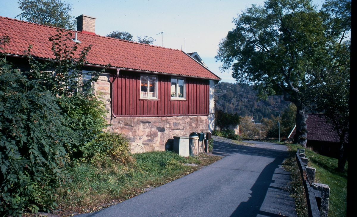 Torrekulla 1:5 "Bengt Olssons" på Nyhagenvägen 2 år 1979. Uthusbyggnad med stengrund och Bengt Olssons snickeriverkstad. Han tillverkade bl a soffor. Byggnaden finns fortfarande kvar (2020). Relaterat motiv: A1652.