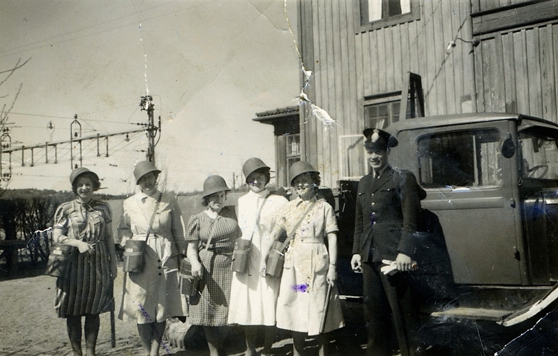 Ragnar Andersson, polis i Kållered med hemvärnsflickor, han bodde i huset.
