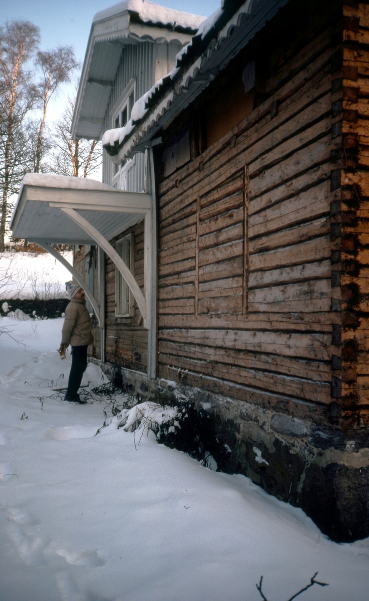Torpställe som har tillhört familjen Werlin utefter Streteredsvägen vid Risås backe cirka 1980. Byggt cirka 1860-80, rivet under 1980-talet. Vid rivningen tillhörde marken gårdarna i Backen. Där finns villor idag. Staffan Bjerrhede står vid husväggen. Relaterat motiv: A0503.