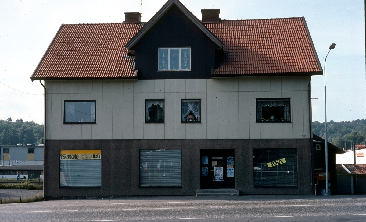 Vommedal Östergård 2:12 (idag: Våmmedal 2:12) "Mariedal" år 1979. Affärshus på Gamla Riksvägen 42 uppfört 1907. Det har varit flera ägare till lanthandeln, den sista utav dem var Kaj Almén.