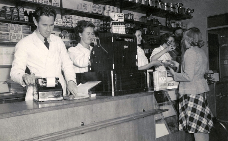 Gustav Svenssons lanthandel Gustavsro efter branden 1943, Gamla Riksv. 48.