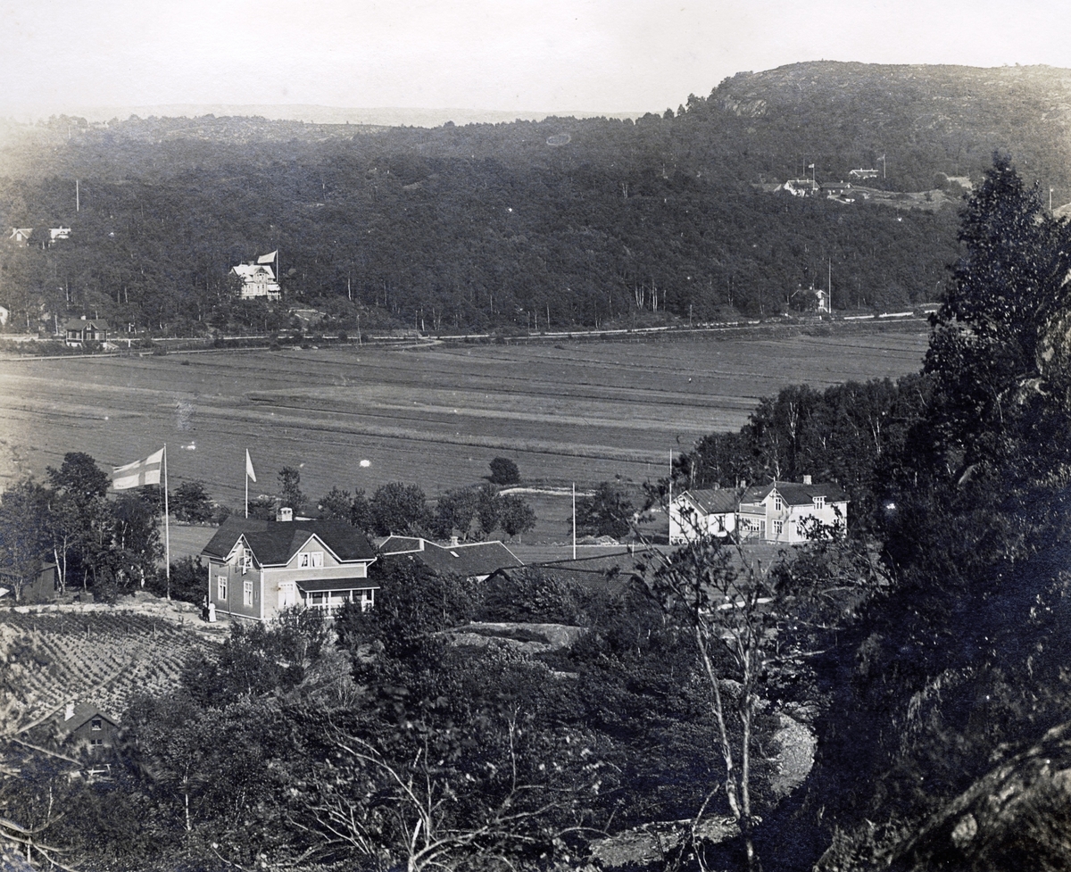 Vy från Torrekulla utöver Kållered cirka 1914 - 1915. I bakgrunden ses Kyrkbacken och till höger Sagåsen. I förgrunden till vänster ligger Villa Oliveberg (nuvarande Böletvägen 1). I mitten ses Bölets gård "Erikssons". Till höger ses gamla Missionshuset (idag: Ekenkyrkan på Helgeredsvägen 1) och Fridhem på Labackavägen 25.