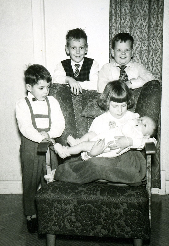 Kusinerna från vänster: 1. Staffan Bjerrhede f. 1953, 2. Christer Månsson f. 1947, 3. Roger Sandberg f. 1948, 4. Annika Bjerrhede f. 1948 och 5. Robert Svensson f. 1957. I salen hos far/mors föräldrarhem Judit och Gustav Johanssons.