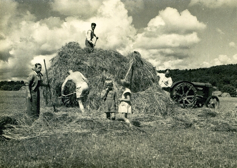 Höbärgning cirka 1955, Vommedal Östergård 2:41 "Olas" vid nuvarande Högenvägen.