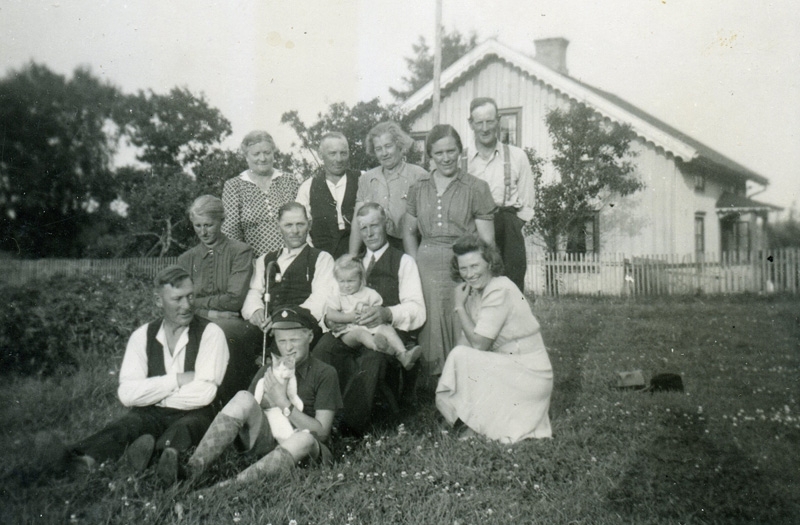 Sittande främst fr. v. 1. ? 2. Bertil Aronsson med katt.