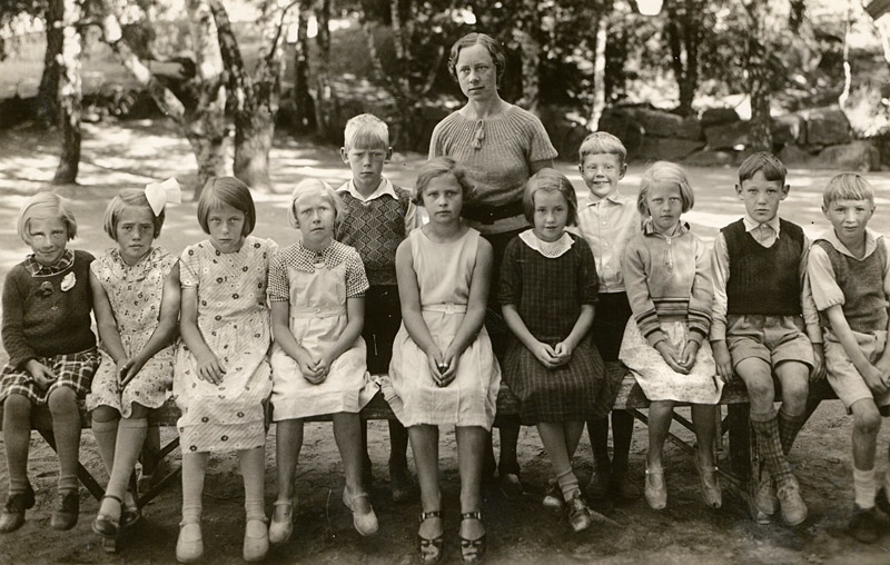 Lärarinna Greta Alm-Andersson, 1930-tal. Elever födda 1928.