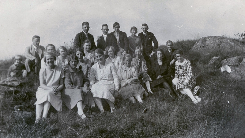 Mellersta raden fr. v. 1. (Barnet)? 2. Henry Olsson, Vommedal f. 1900 d. 1961, gift med Hulda. 3. Skymd. 4. Elvira