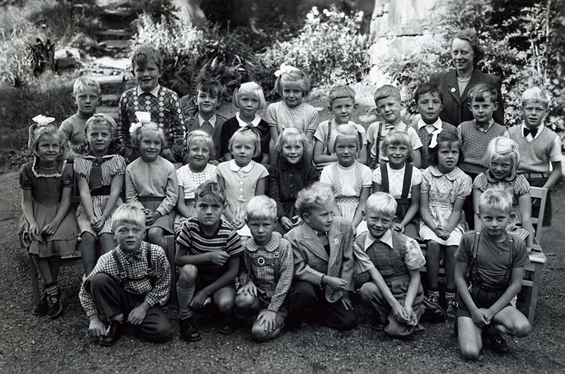 Klasskort 1952-1953 på elever födda 1945. Lärare: Greta Alm Andersson.