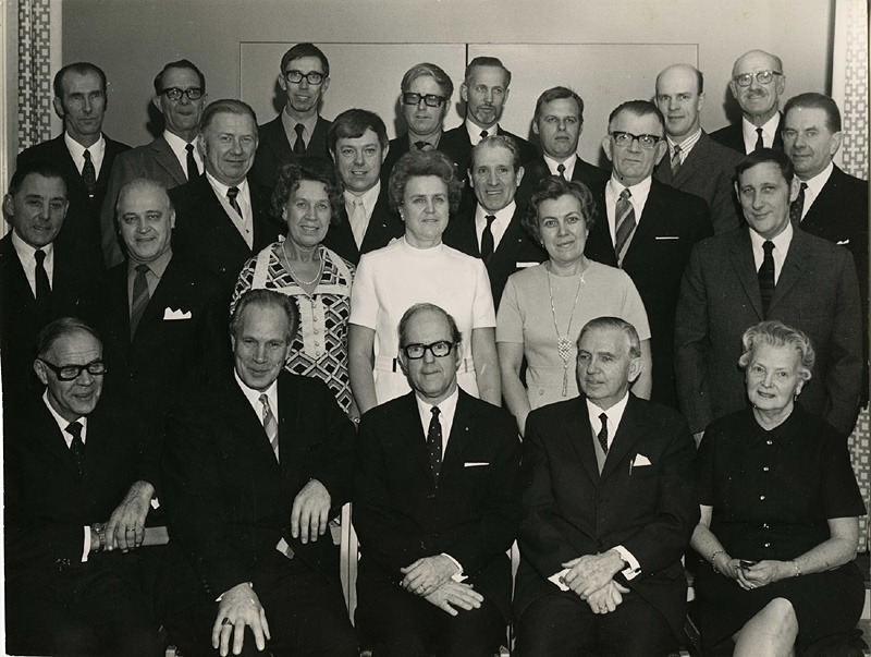 Bakre raden fr. v. 16. Ivar Carlsson (Fp). 17. Evald Johansson (Fp). 18. Arne Ingelhammar (Fp). 19. Lundberg (S).