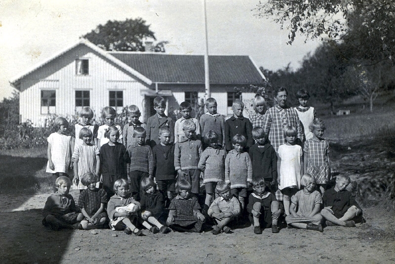 Liveredskolan årsklass 1926-27. Lärarinna: Hulda Holmén. Samtliga är födda 1919-20. 1:a och 2:a klass.