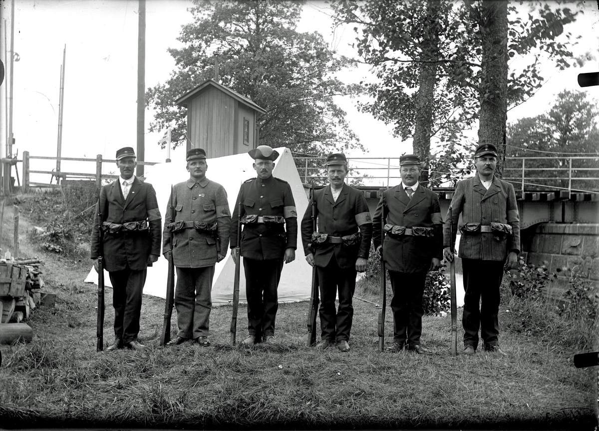 Manskap och befäl under bevakningen av Östunabron 1918-1920.