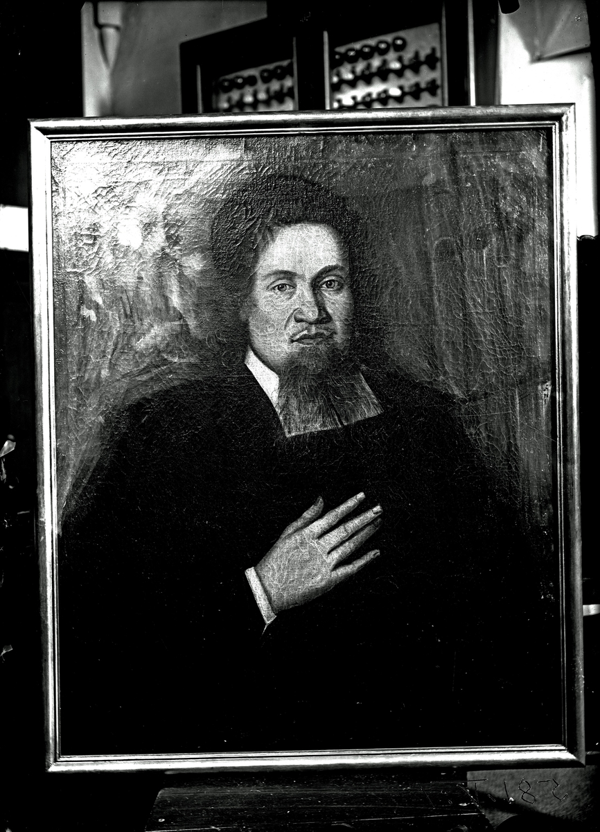 Titel: Målning av Petrus Browallius. Kyrkoherde i Köping 1702-1738. Fotograf E Sörman.