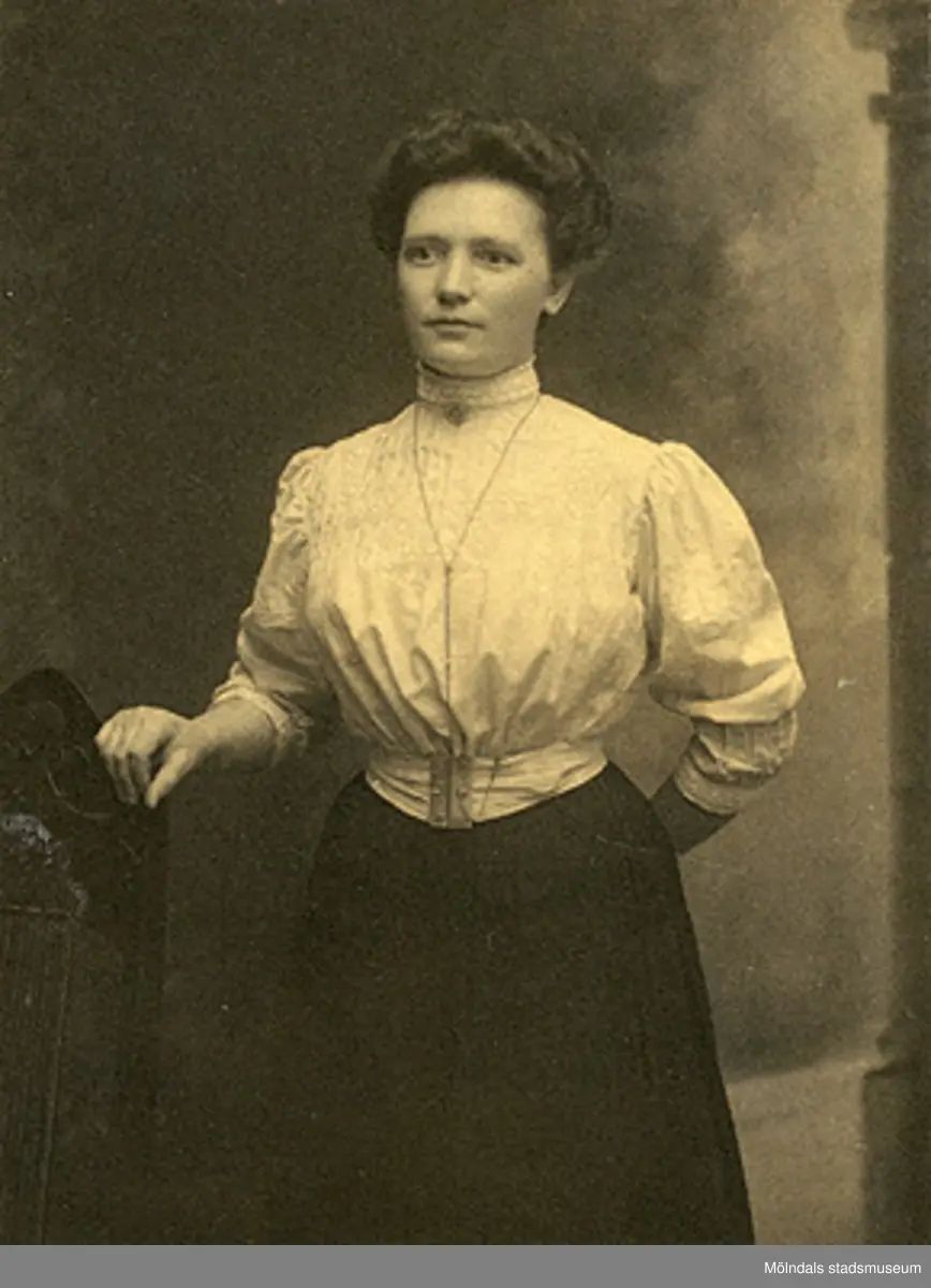 Ateljéporträtt av en ung kvinna taget omkring sekelskiftet.