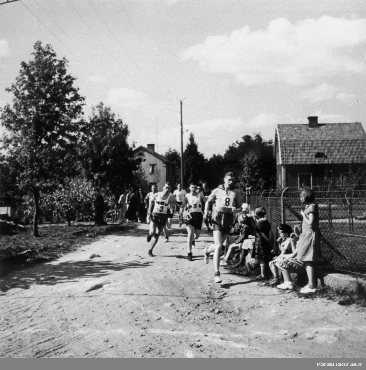 Titel:Stafett "Mölndal runt", 200 m från start. "Ryet" leder, MSK tvåa.