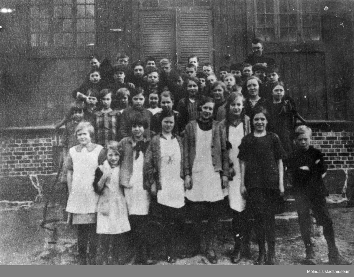 Skolklass uppställda utanför Kärra skola i Mölndal år 1928.