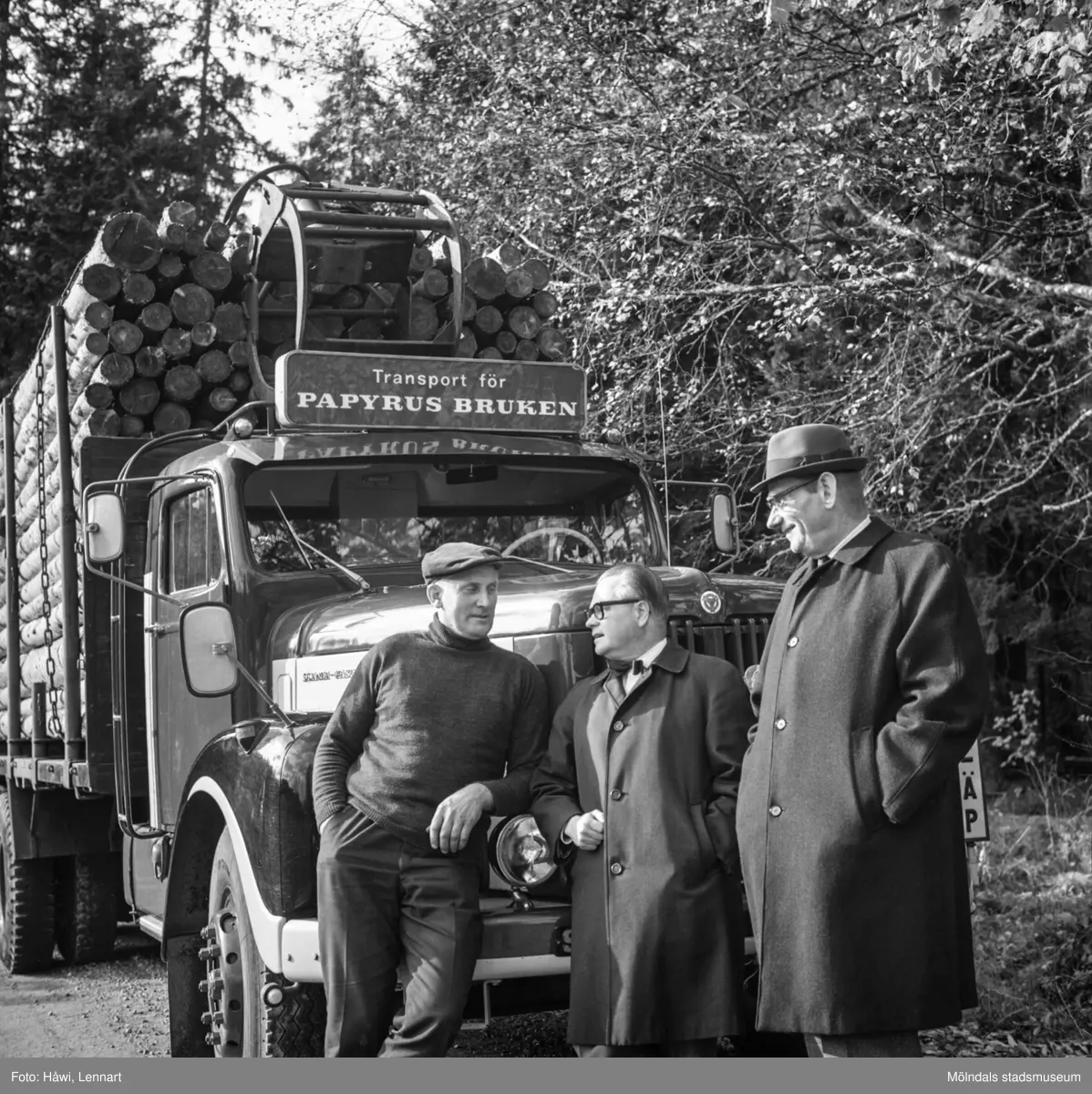 Titel: Timmerlass med lastbil, 22/10 1967. Fotografi för pappersbruket Papyrus årsberättelse 1967.