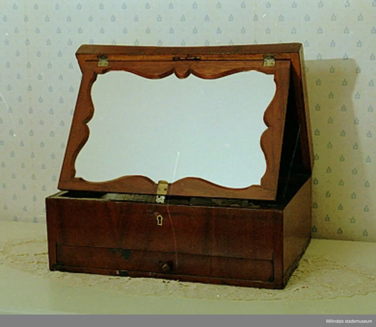 En rakspegel i mahogny.