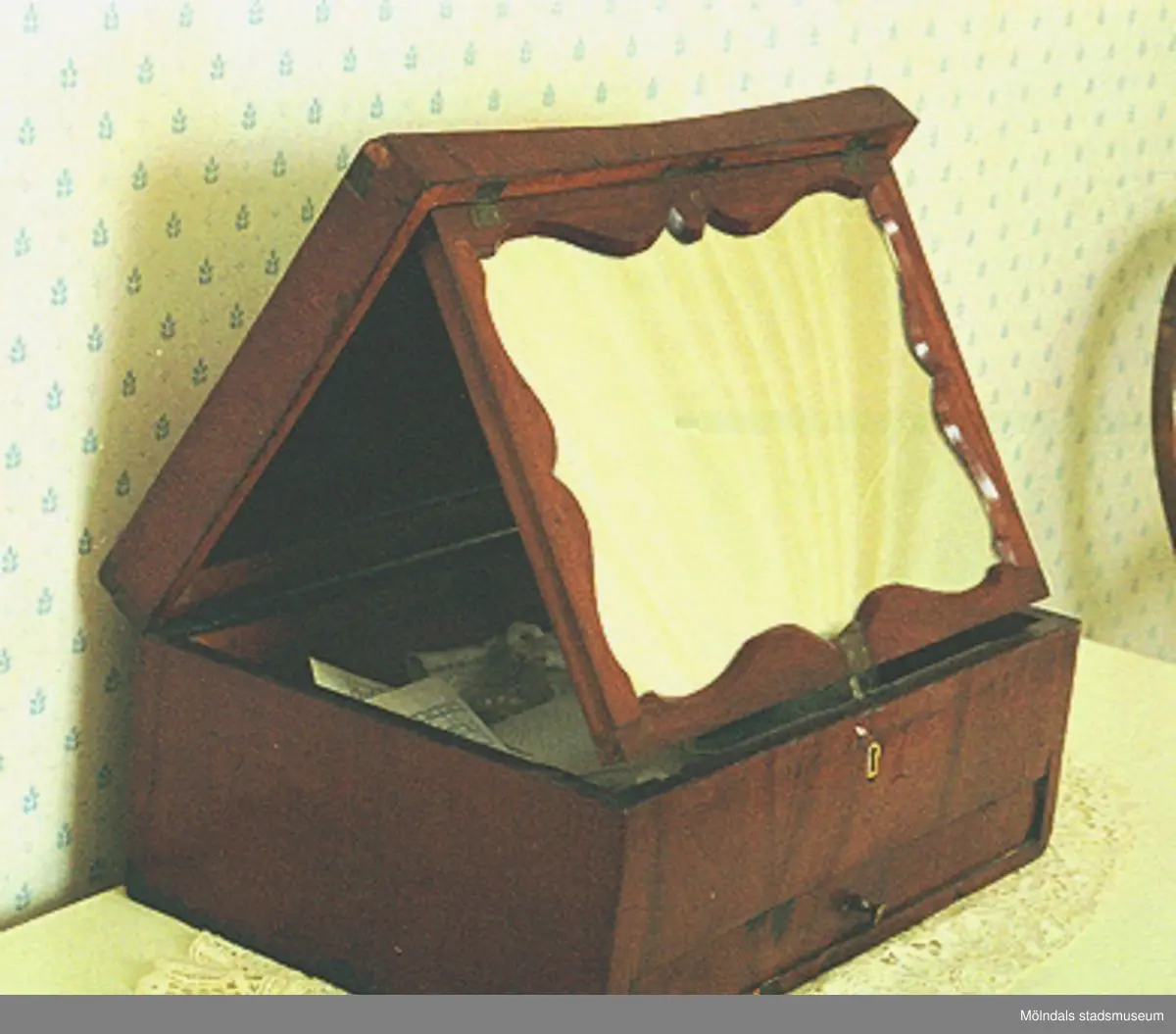 En rakspegel i mahogny.