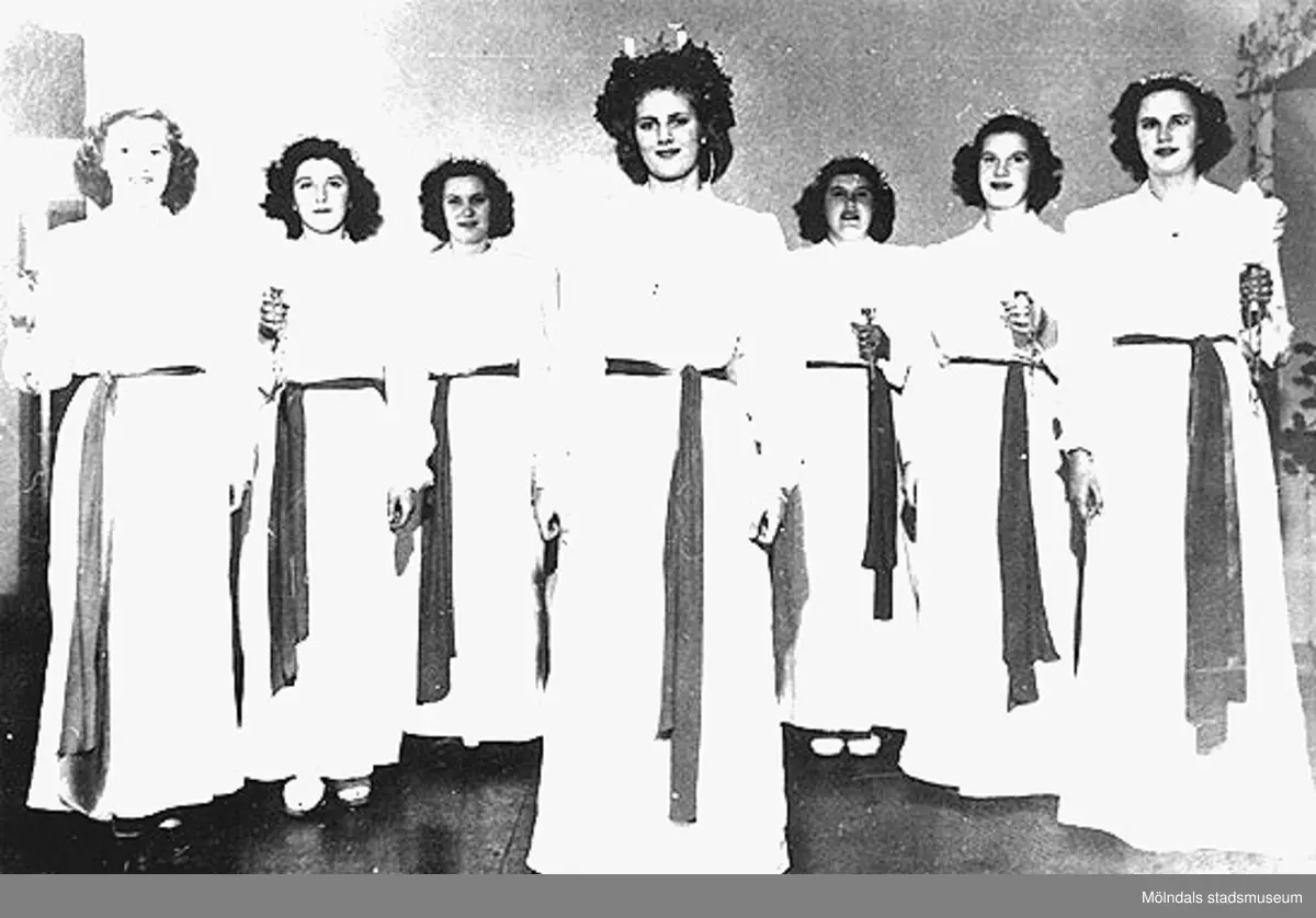 Annestorp i Lindome år 1949. Luciafest på färgeriet med inbjudna pensionärer.
