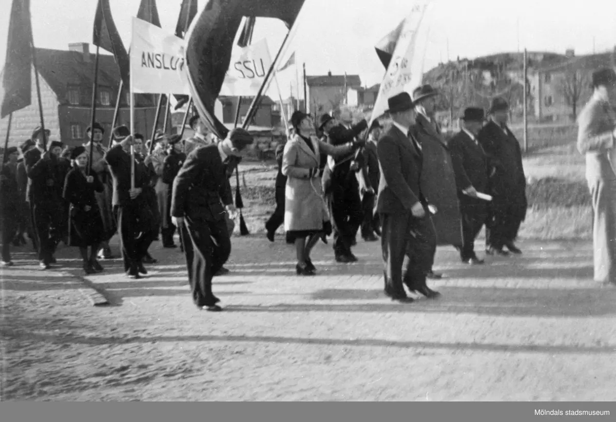 Demonstrationståg med bl a SSU (Socialdemokratiska ungdomsförbundet).