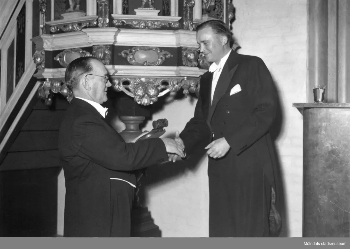Bemärkelseutdelning troligtvis i samband med något jubileum på Mölndals Industri- och Hantverksföreningen.