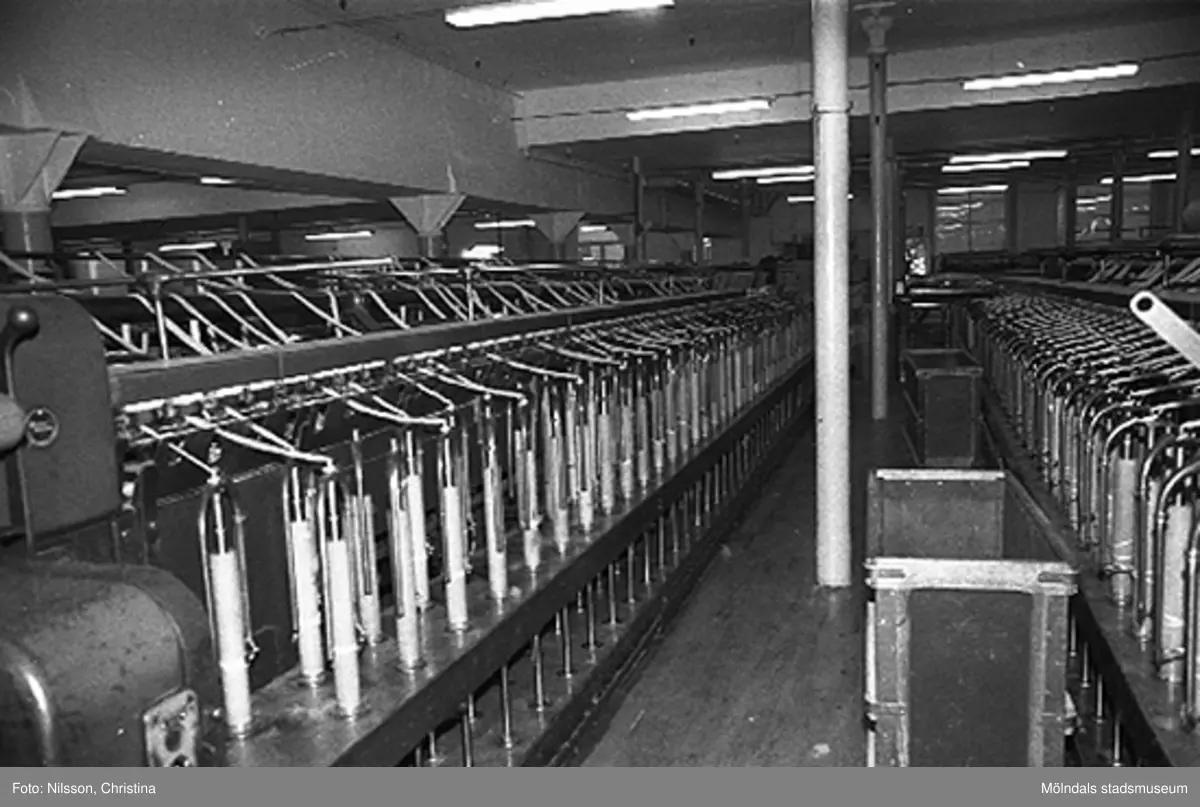 Interiör i Rydblom spinnerimuseum i Marks kommun 1995.
