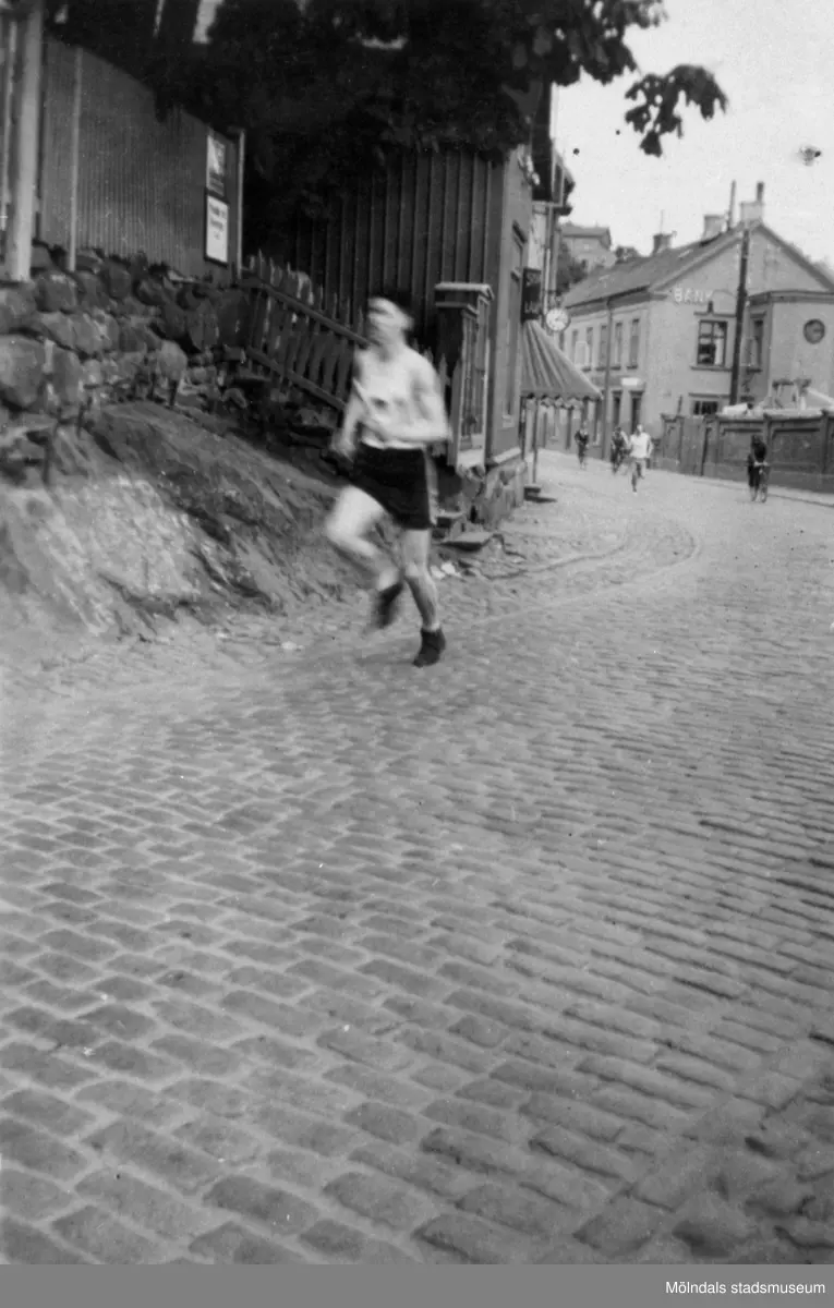 Titel:Stafett "Mölndal runt", 200 m från start. "Ryet" leder, MSK tvåa.