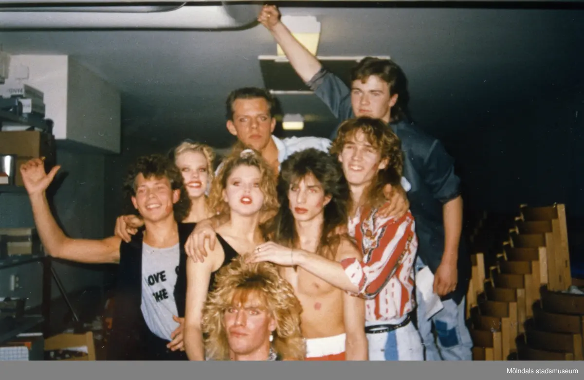 Rockbandet "Love on the rocks". Niklas Philipsson är tredje man från vänster på andra raden. Mölnlycke 1980-90-tal.