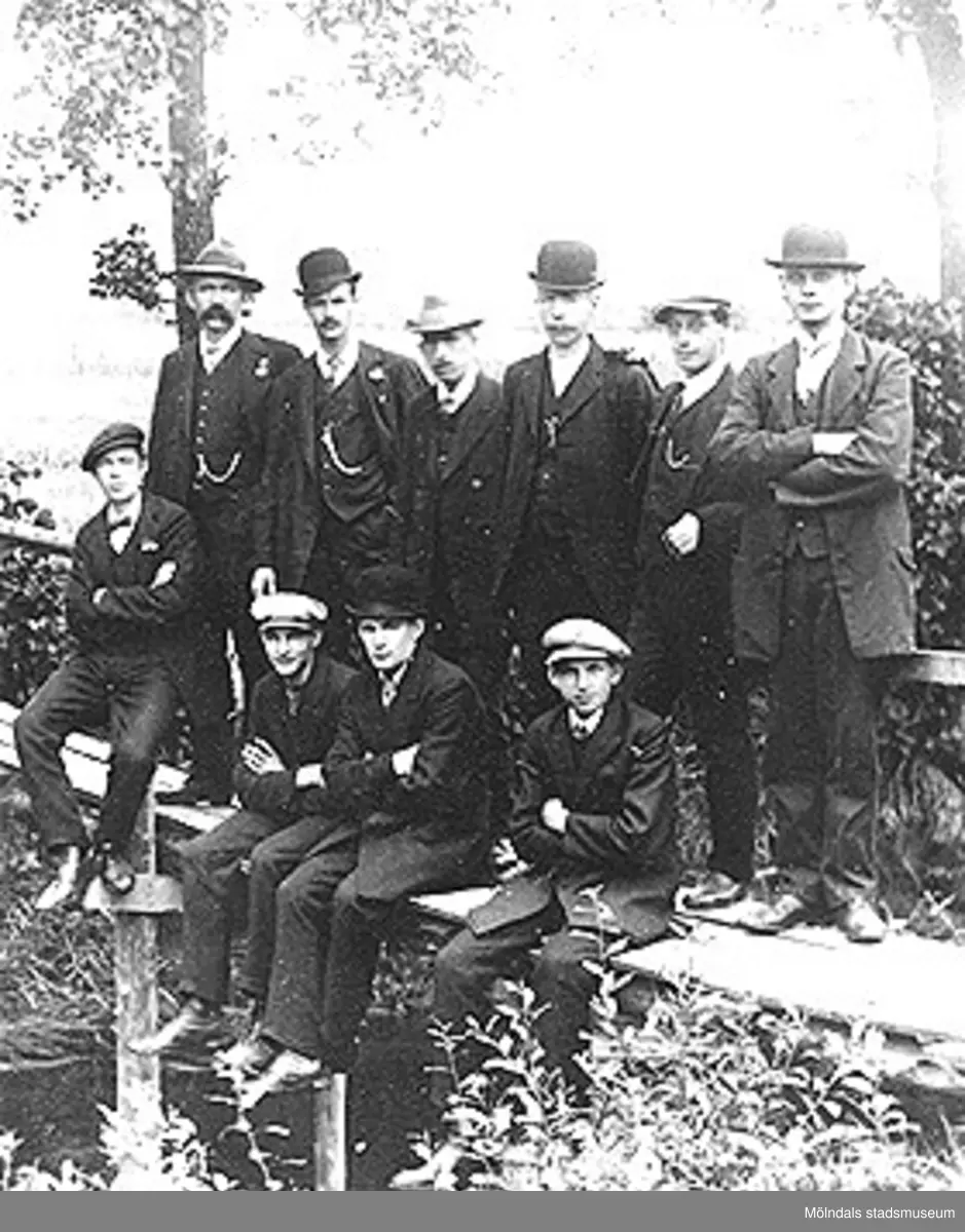 Annestorp i Lindome. Helgdag. I huvudsak arbetare vid fabriken, i övrigt folk från byn. Ca 1920-talet.