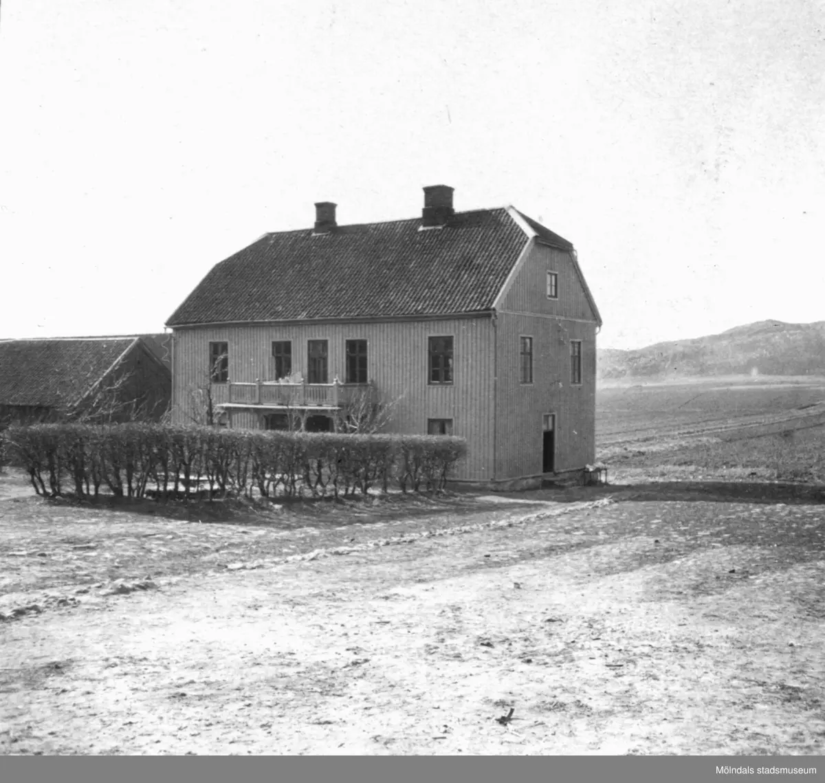 Titel: Åby Frälsegården, huvudbyggnaden. Huvudbyggnaden och ladugård brann ned natten mellan den 2 och 3 september 1933.