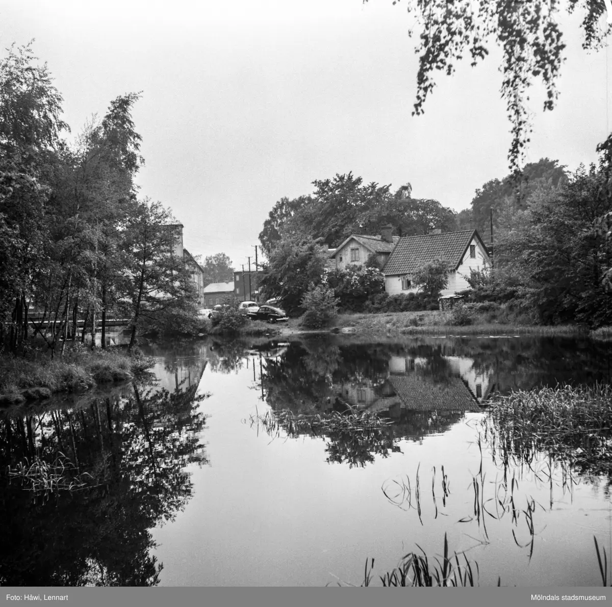 Titel: Mölndalsån, uppströms Forsebron. Mölndal, 1/6 1961.