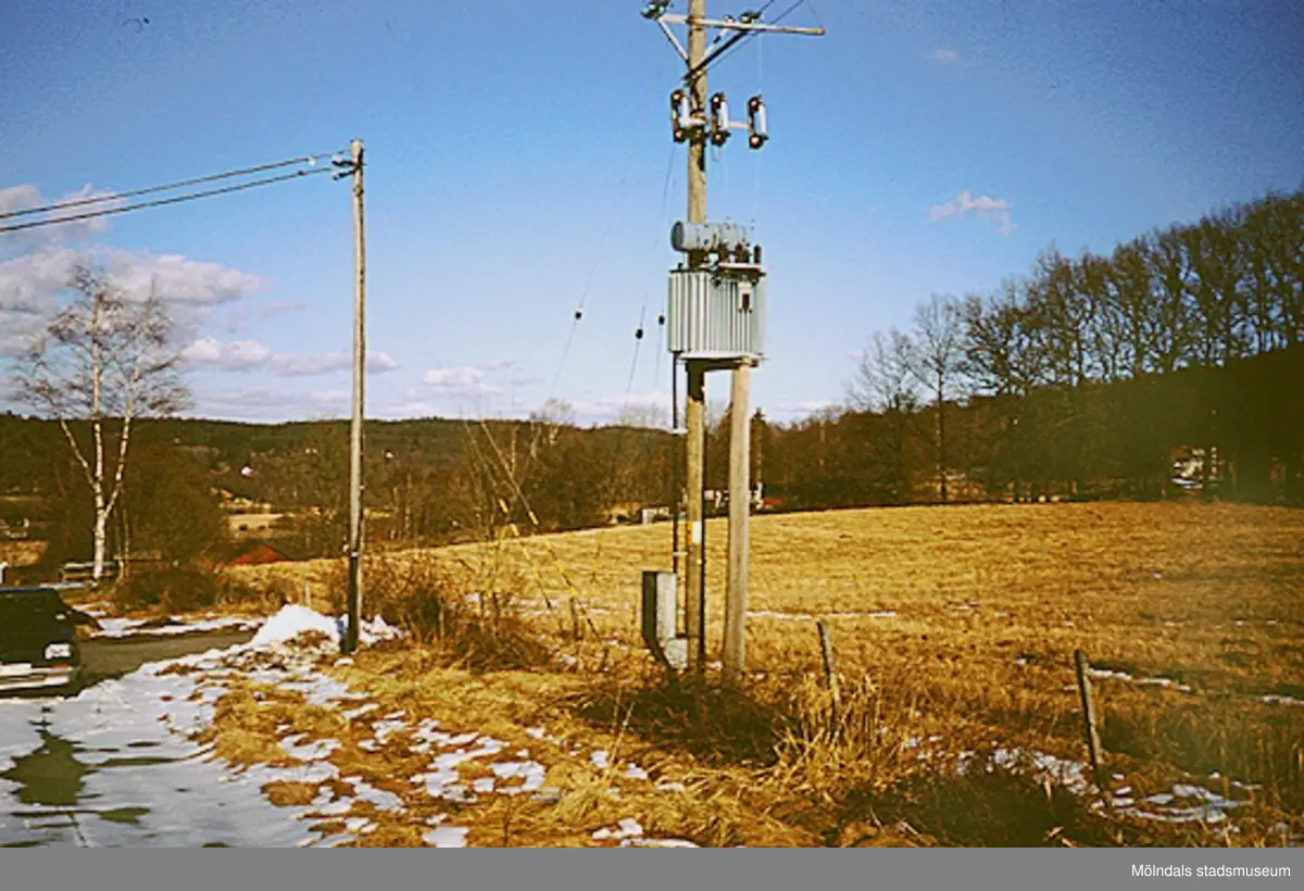 En gammal transformatorstation vid Norra Hällesåkersvägen (numera riven), mars 1994.