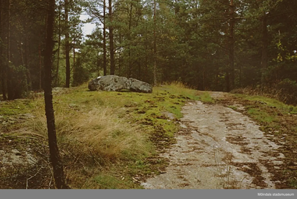 Sten på stig mot Djursjön, oktober 1993. Relaterade motiv: 2003_0410 - 0415.