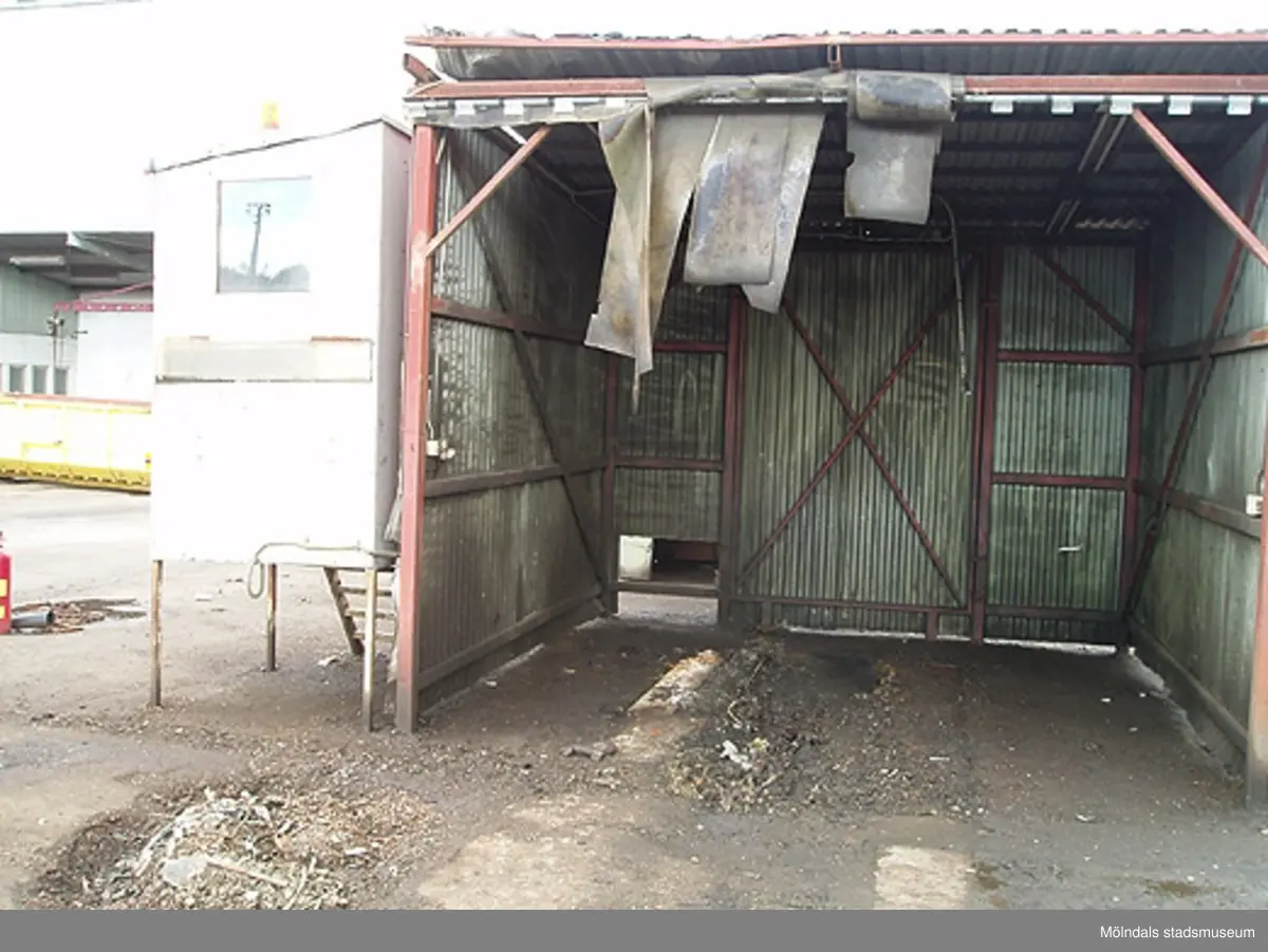 Byggnads/rivningsdokumentation av vindskydd för hydraulpress år 2006, okänd plats.