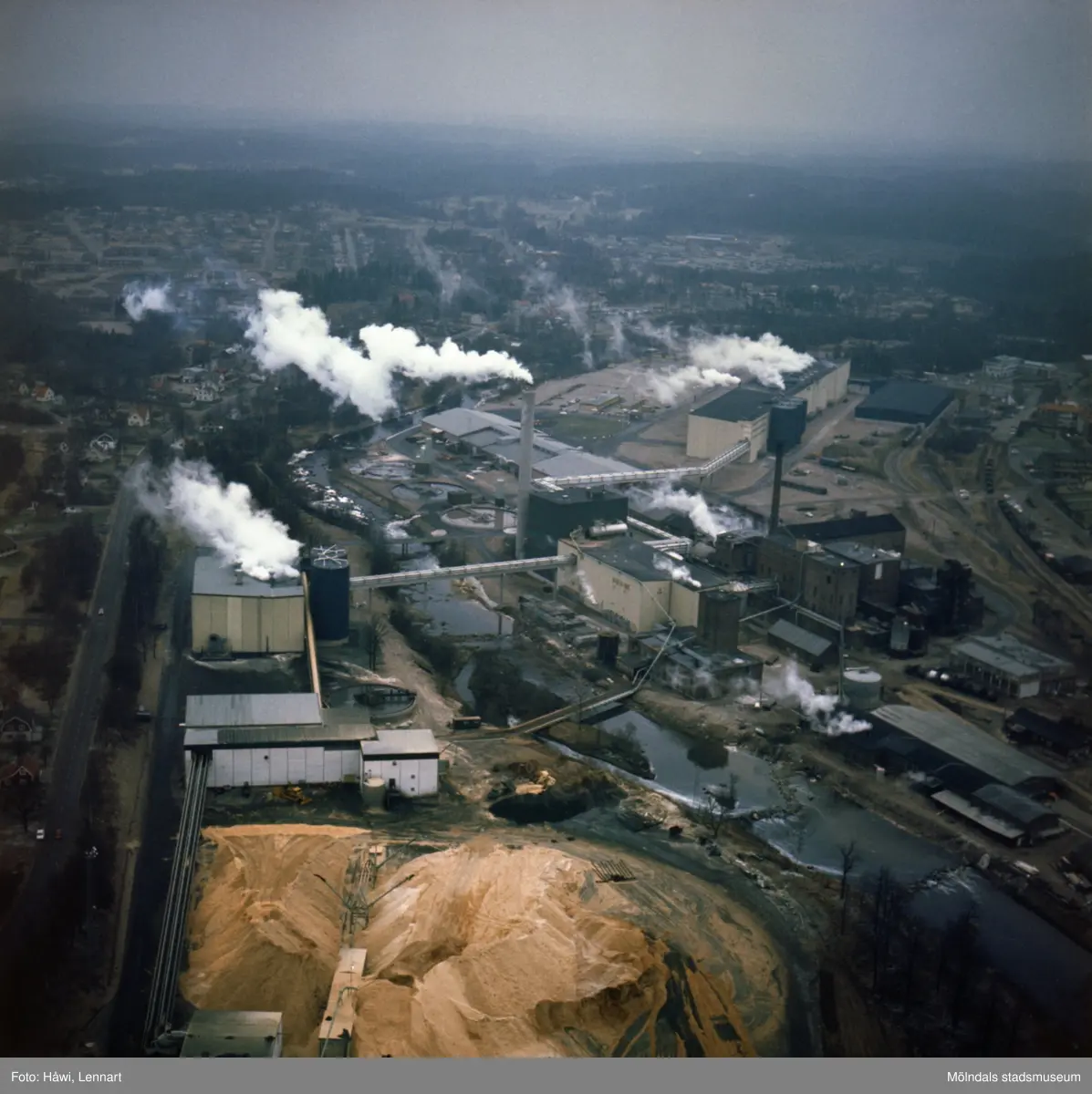 Flygfotografi över Hylte Bruks fabriksområde, år 1974.