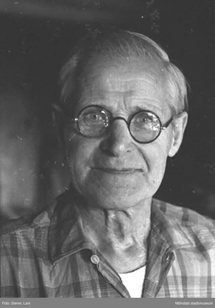 Snickaren Albert Palmstedt. Albert tillverkade bland annat Göteborgsstolar. Han avled 1974. Fotografiet är förmodligen taget i slutet av 1960-talet, i alla fall före sommaren 1969.
