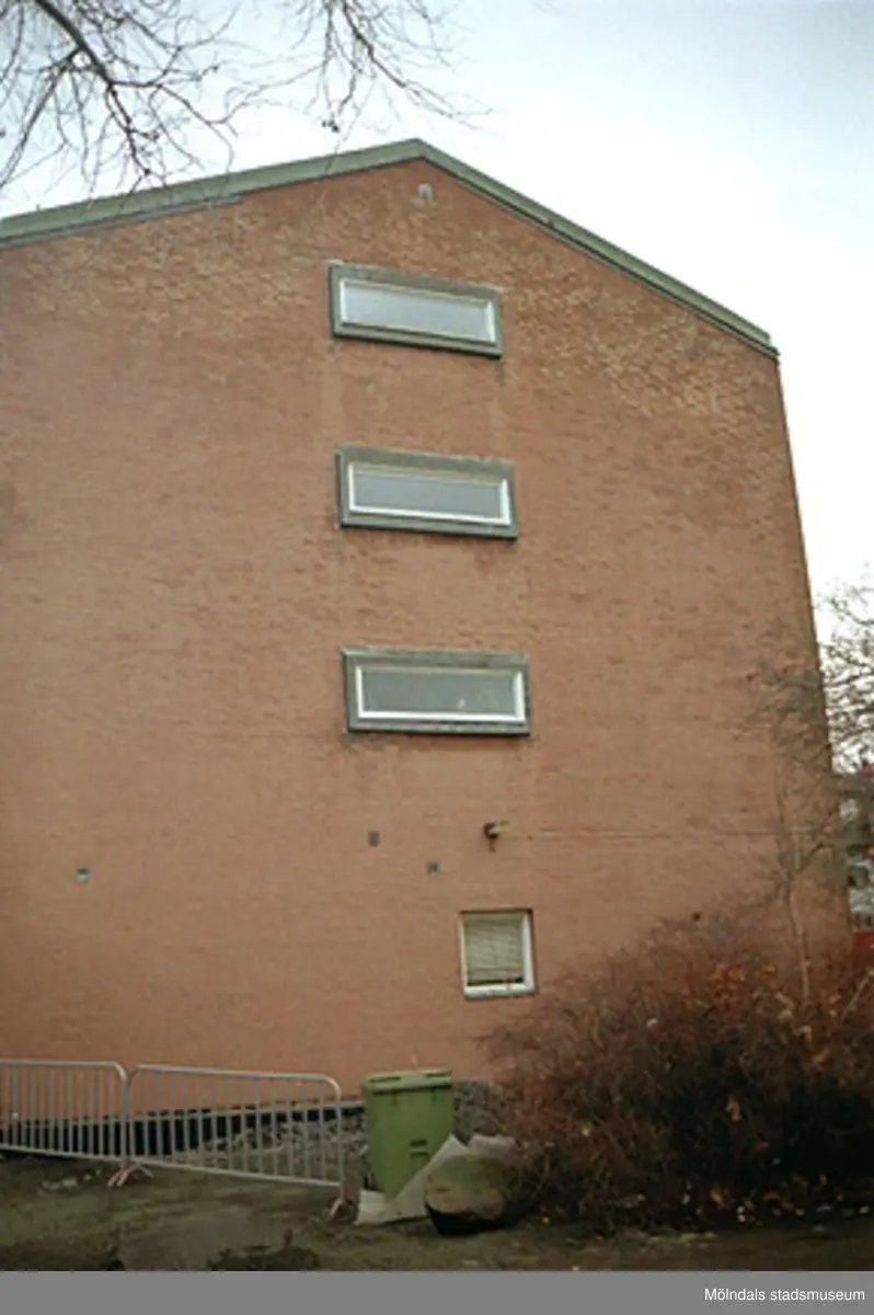 Byggnadsdokumentation. Vy från väster på bostadshus med lägenheter vid Jungfruplatsen. Oktober 1998 - januari 1999. Relaterade motiv: 2002_0932 - 0934.