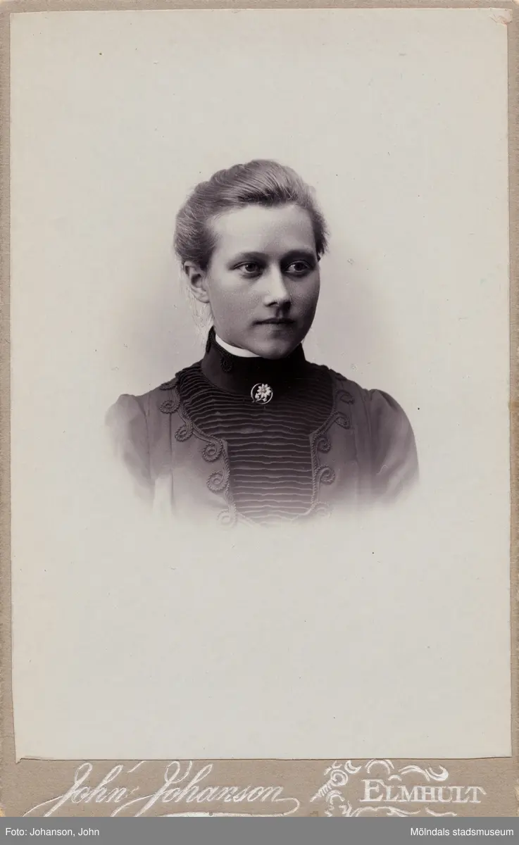 Porträttfotografi av Hilda Ny (1883 - 1966), senare gift Börjesson, därefter Hallgren. Fotografiet är taget ca 1903.