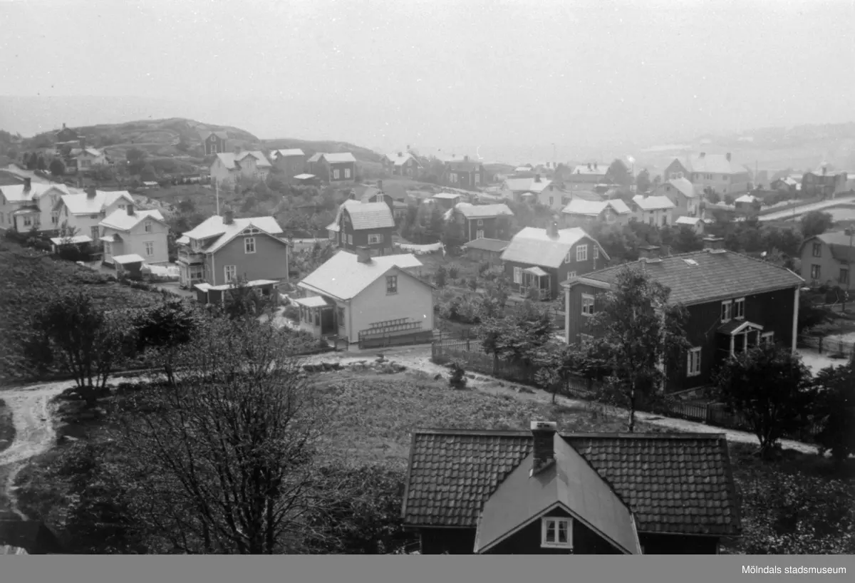 Ryet från Glasberget. Vy över småhusbebyggelsen, 1920-tal. I förgrunden ligger nuvarande Åldermansgatan som mynnar ut i Brunnsgatan.