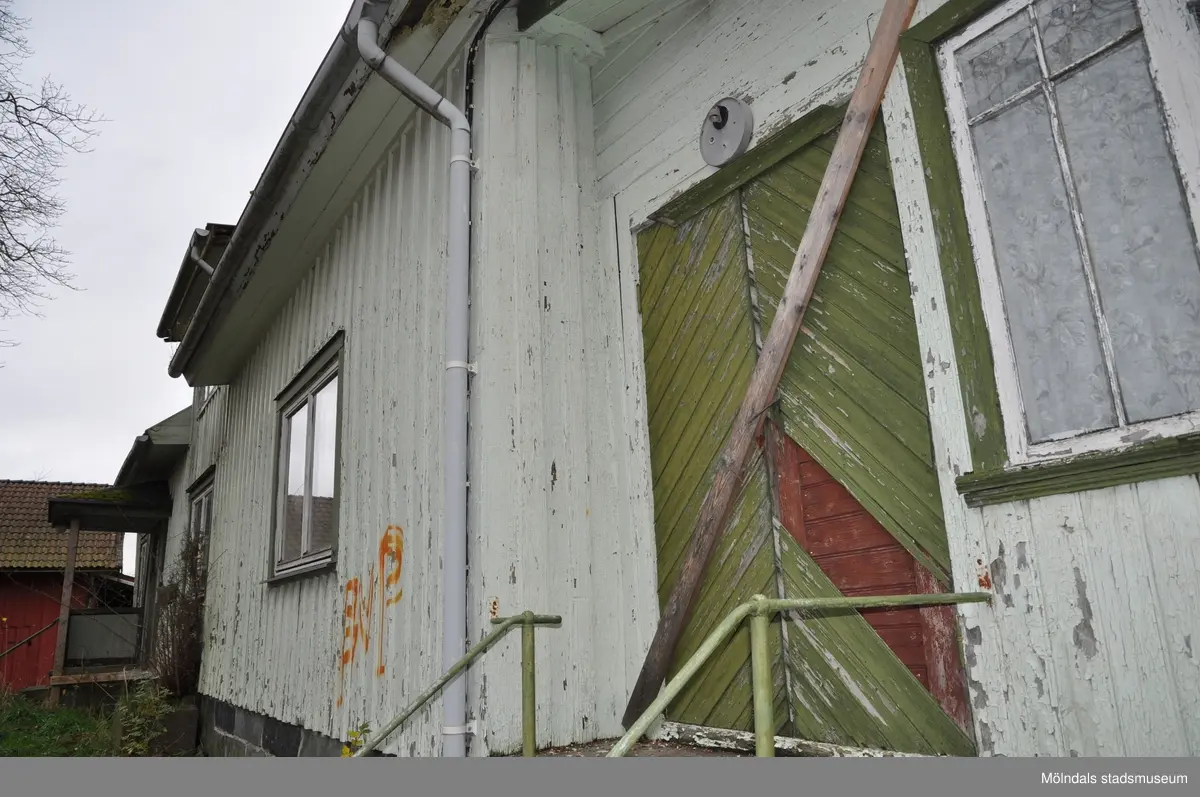 Bostadshus på fastigheten Ranntorp 2:20 i Ranntorp, Lindome, i Mölndals kommun. Fotografiet är taget den 22/10 2014. Byggnadsdokumentation inför rivning.