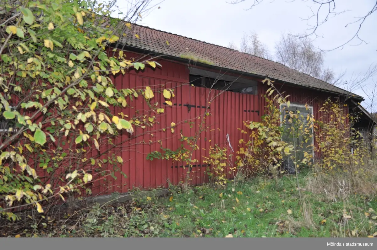 Ladugård på fastigheten Ranntorp 2:20 i Ranntorp, Lindome, i Mölndals kommun. Fotografiet är taget den 22/10 2014. Byggnadsdokumentation inför rivning.