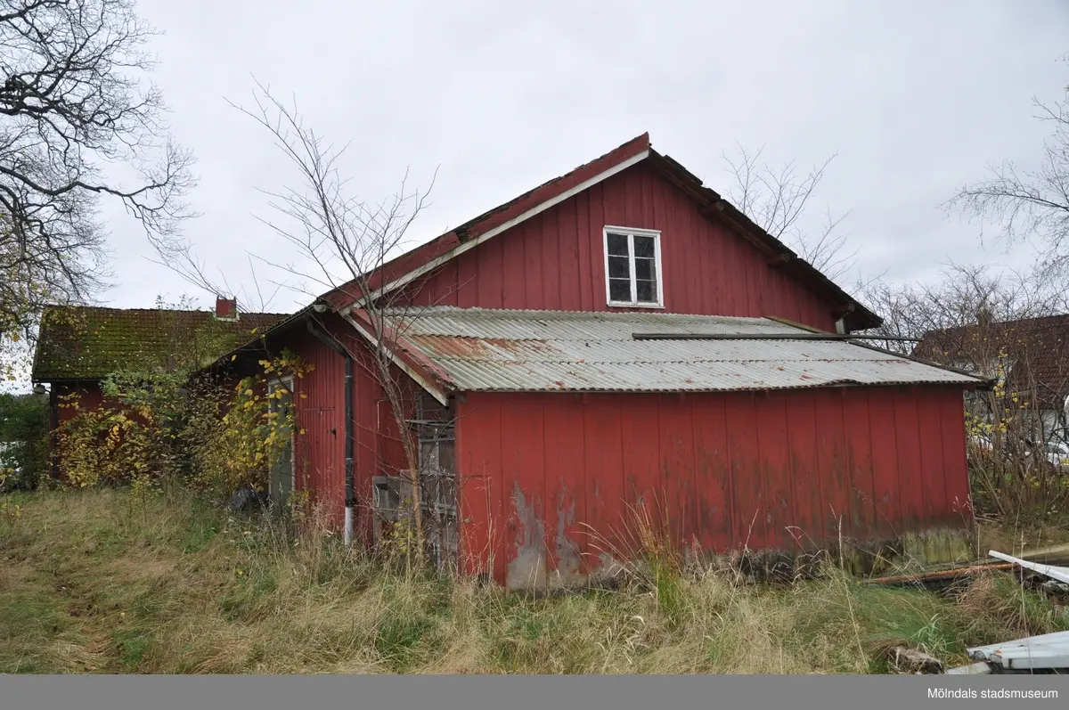 Ladugård på fastigheten Ranntorp 2:20 i Ranntorp, Lindome, i Mölndals kommun. Fotografiet är taget den 22/10 2014. Byggnadsdokumentation inför rivning.